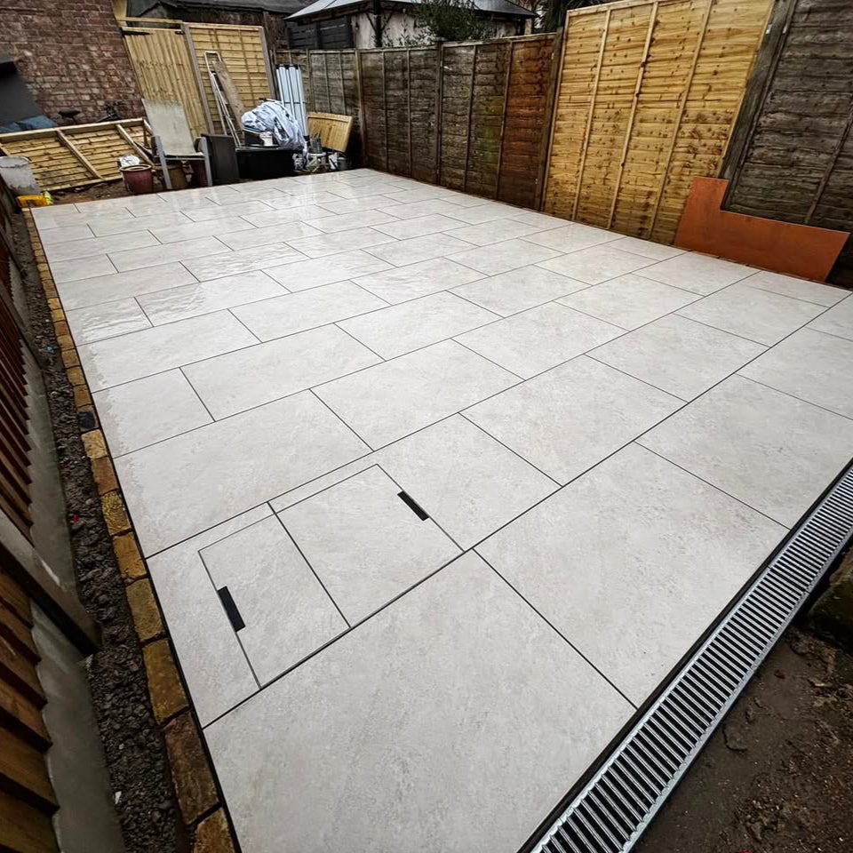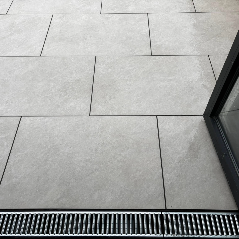 Indian Porcelain paving provides the looks of natural stone paving with ultra hard wearing and easy maintenance that only porcelain can provide. Our Quartz White porcelain paving has been printed with an off-white surface copied from natural stone and provides a luxurious finish and chic look. Indian porcelain provides all the advantages of porcelain at a more affordable price.