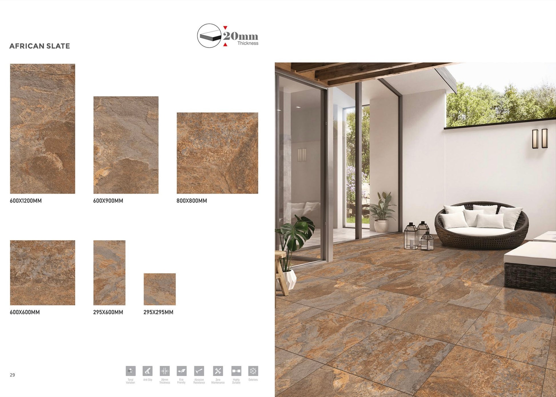 Indian Porcelain paving provides the looks of natural stone paving with ultra hard wearing and easy maintenance that only porcelain can provide. Our Rustic Slate porcelain paving has been printed with a rustic mottled brown surface copied directly from natural slate and provides a luxurious finish and chic look. Indian porcelain provides all the advantages of porcelain at a more affordable price.