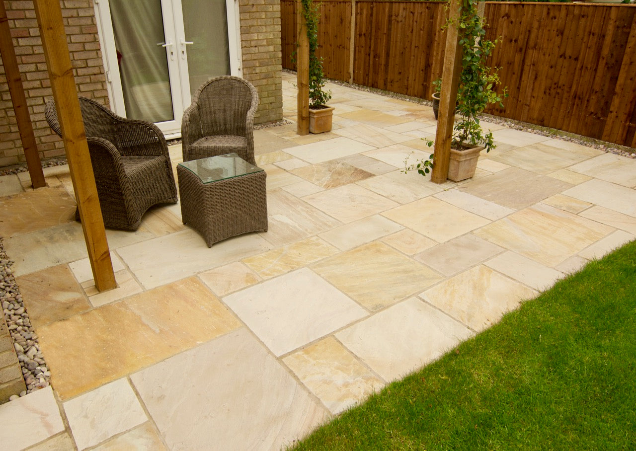 Use CalculatorMint Fossil Indian Sandstone Paving (Mixed Size 18.9m² Patio Pack 22mm Calibrated)