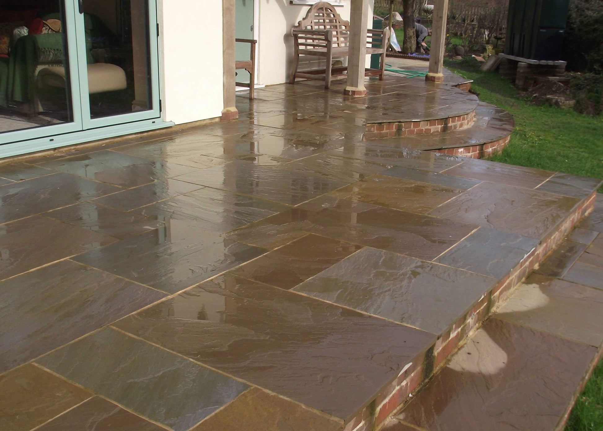 Look at these gorgeous Raj Green Indian sandstone patio slabs. This particular variety of stone is one of the nation’s favourites, with typically a wonderful pallet of natural colours that feel traditional and homely and fit into most surroundings. This type of stone is also sometimes referred to as ‘Raj Blend sandstone’.